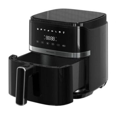 Friteuza cu aer cald Heinner VarietyFry HAF-B5BK1500, 1500W și 5L. Display digital, timer 60 min, 8 programe presetate și coș detașabil. Ideală pentru gătit sănătos.