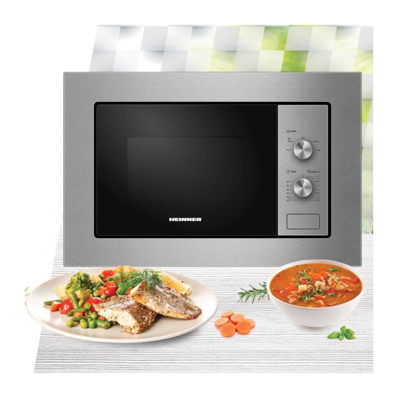 Cuptor cu microunde incorporabil Heinner HMW-MDBI20MIX 20L, Control mecanic, Inox/Negru