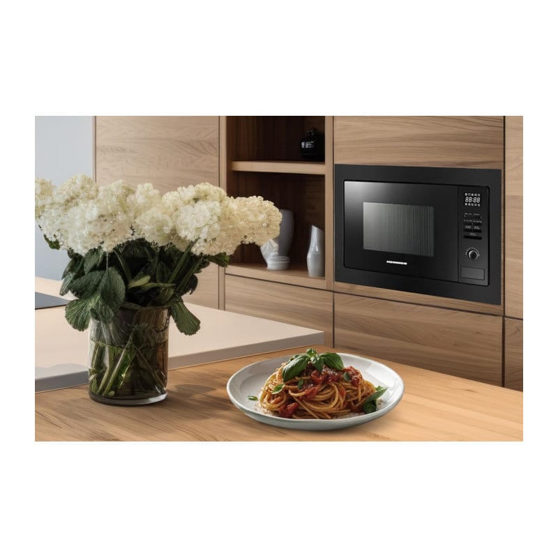 Cuptorul cu microunde incorporabil Heinner HMW-MDBI25GDBK oferă gătire rapidă și versatilitate. Cu 25 L capacitate, grill 1000W, control digital și 10 programe automate, este soluția ideală pentru bucătării moderne.